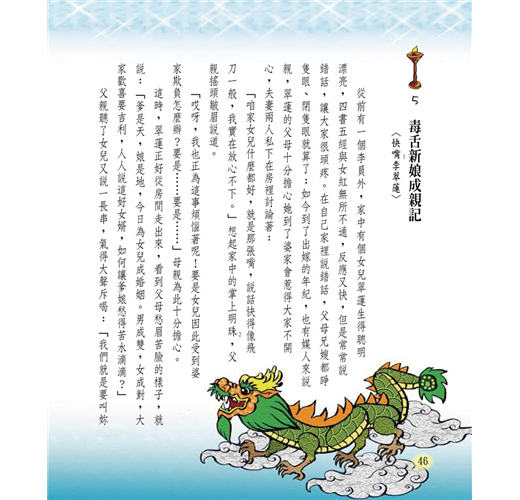 4.全系列7本,每本都搭配精美典雅的手繪插畫,有中國小品畫的逸趣、日本和服彩繪的細膩、剪紙、中國水墨畫風格……,呈現雅緻的東方美術感,提升學子的美學品味。