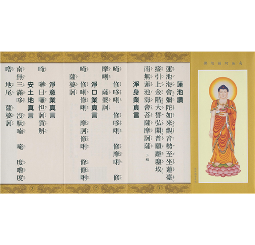 《阿彌陀經》是淨土宗的根本經典之一,是念佛人修行的重要依據。此經於前半段宣說西方極樂世界的種種的莊嚴以及阿彌陀佛佛號由來與意義;其後闡明勸導眾生誦念阿彌陀佛之名號以往生西方極樂世界;最後以東、南、西、北、下、上等六方諸佛亦勸導其土眾生相信阿彌陀佛及其極樂世界之事跡作結。