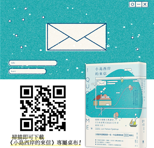 初讀「小島西岸的來信」,不禁讓我想起過世的親人,艾芮卡失去女兒的後悔、憤怒、不解......我深有體悟,有一天艾芮卡收到了謎一樣的匿名信件,上面寫著「找回失落的一角」,這句話出自她多年前為女兒製作的佳語錄,收錄了媽媽及外婆的人生金句。透過這本書,跟著艾芮卡一起收到寫上母親話語的信,從信中的文字,得到內心的救贖與諒解。悲傷過後最難的便是整理好自己的情緒,再站起來。逝者已去,我們最能做的事情,便是好好珍惜還在身邊的人。——演員‧畫家 李優