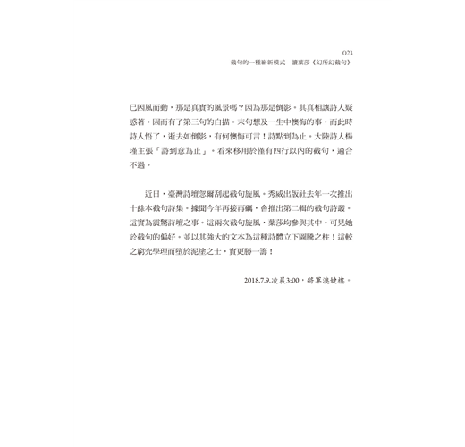 截句的一種嶄新模式―讀葉莎《幻所幻截句》
