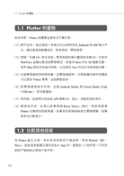 ●第1 章 Flutter 簡介:先介紹行動端近年的發展變化,然後引出Flutter,介紹Flutter的環境架設。