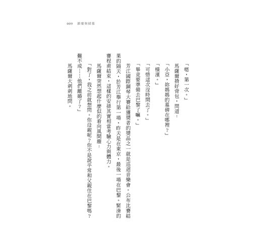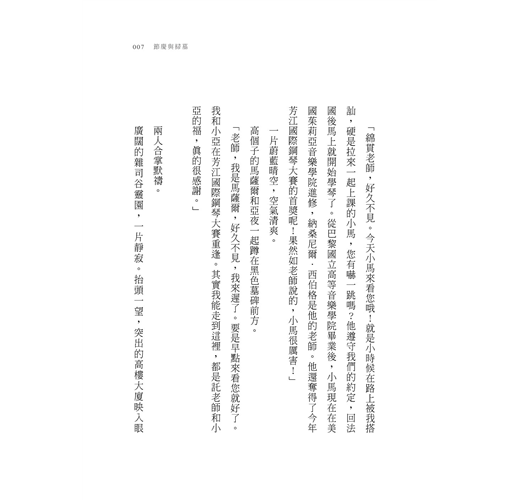 ◎這本書推薦給三種人:讀了《蜜蜂與遠雷》的人/想看《蜜蜂與遠雷》但被頁數嚇到的人/有興趣窺探音樂世界的人。