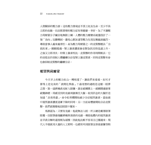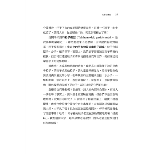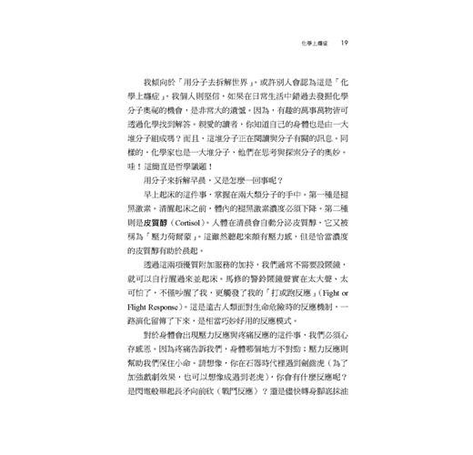 有燈光就睡不熟?喝咖啡要挑時間?冬天一開窗冷空氣吹進來?不含氟牙膏更天然?巧克力只溶你口之謎?喝酒臉紅是優勢?作者不愧為悠遊於科學與社群傳播的高手,整本書信手捻來,案例愜意趣致,深度拿捏恰到好處,貼近生活時而翻案打臉,時而自嘲吐槽,整本書讓我這化學外行人一口氣讀完,竟然毫無疙瘩,更覺知識深刻腦海,科學思維迴盪心頭,彷彿自己也開了一隻化學眼……這是今年我讀到最好的科普書之一,對非專業讀者極為友善,在此推薦給你。——泛科知識公司知識長鄭國威