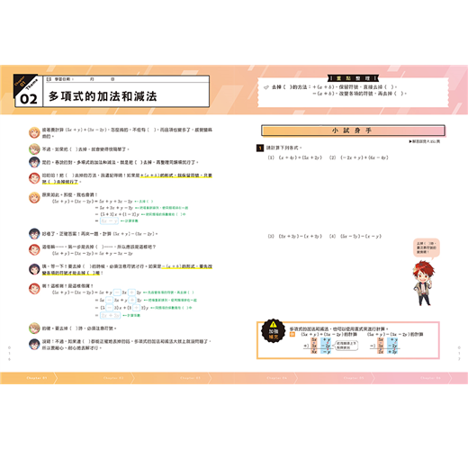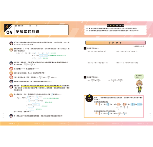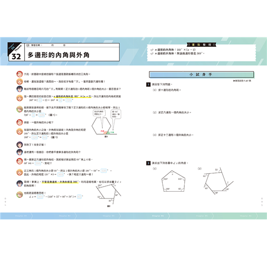 【特色1】最強的互動學習自習本51個數學重點必考單元,「公式筆記」、「加強補充」、「重點POINT」一本兼備,角色互動提升學習興趣,打好基本功。
