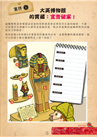 它有趣味的故事設定,它還有小孩喜歡的道具──本來看不清楚的字,利用紅色濾光鏡就能看到;混沌紊亂的線索,只要放上顯影卡居然就出現了意想不到的文字或圖案;而解密密碼卡則能破解不可思議的謎面……一點點小巧思,就能增加人書互動,讓孩子們願意與書親近,這才是這本書最最最與眾不同的地方!