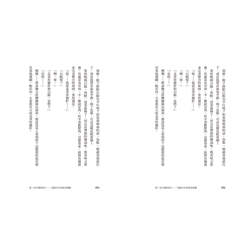 也是光看電視和網路影片,「好像很好吃!」便有了口腹之慾的時代。總覺得心靈變得空虛匱乏,失去對於食物的純粹憧憬,只是流著充滿貪欲、羨慕的口水,反觀空腹少年的眼瞳有如湧泉般清澈。