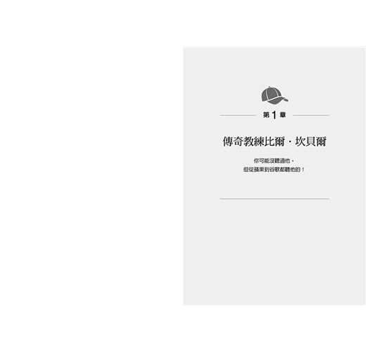 透過這本書你會看到,坎貝爾是創造以上條件的大師,以及他如何將安全感、明確性、重要性、可靠性和影響力深植他指導的每一個團隊。坎貝爾的故事最棒的地方在於,你愈深入了解他,每天就會看見變得更像他的機會。