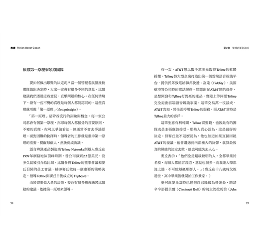 「比爾性格率真、機智幽默,他樂在競爭,但也堅持勝之有道。任何和他合作過的人,都會明白在事業與生活中,把大我擺第一的優秀團隊會贏的道理。本書讓讀者了解為什麼他的教練之道如此有效。」──網路女王、Bond Capital合夥人米克(Mary Meeker)