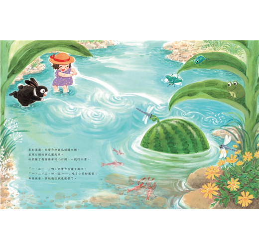 西瓜順著小溪流進大海,好像一場小小冒險,讓吃西瓜的過程變得有趣。