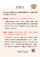 從『初次見面,請多多指教』開始學起,收錄22個日常生活最常用的實用對話。「會話」部份,對話盡量簡短清楚表達,對話文中以紅字標示為本課文法,請參閱「文法說明」。「單字」部份,將對話裡的生詞彙整,方便背誦,並額外補充常用的「相關單字」。