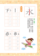 八大基本筆畫詳細拆解練習,依箭頭編號引導筆畫筆順,小朋友按帖臨摹,加深字體結構記憶,輕鬆把字寫好看。