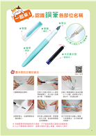 專為小朋友設計的專用寫字鋼筆,特殊設計三角筆握──有效調整握筆姿勢、保持正確坐姿,讓小朋友好握、好寫。彈性鋼筆尖可掌握運筆力道,更容易掌握「永字八法」筆畫的抑揚頓挫,寫字滑順穩定不易累,是最適合兒童學寫字的工具。