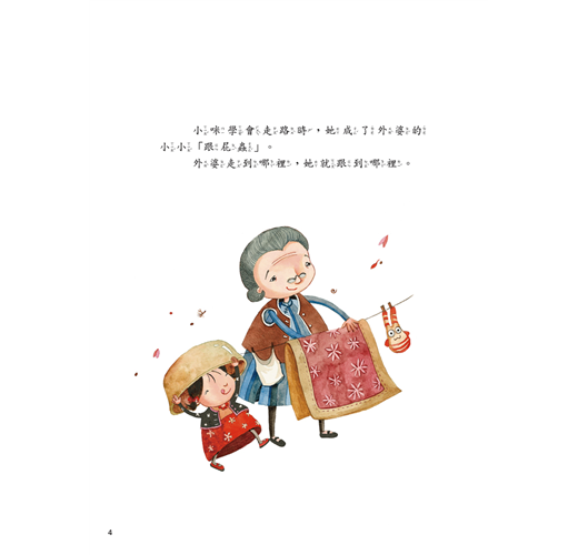 小咪學會走路時,她成了外婆的小小「跟屁蟲」。