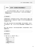 本書結合實務經驗,整理工作上常見的問題,將其集結成冊並輔以簡單的操作步驟,分享延伸應用的各項技巧,讓您在工作上更得心應手。