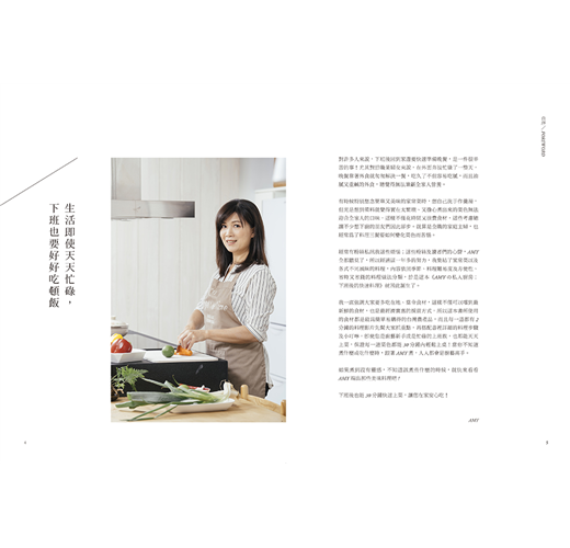 Amy來自於傳統客家大家庭,最愛在廚房裡打轉,從小就熱愛料理、熱愛美食,在耳濡目染之下,長大後學得做得一手道地的客家美食。結婚後更從婆婆那習得一手道地閩南台式料理。加上居住的社居有許多駐台的外籍人士家庭,讓Amy也接觸了世界各國的料理方式,從此開啟了餐桌上的異國風景……。
