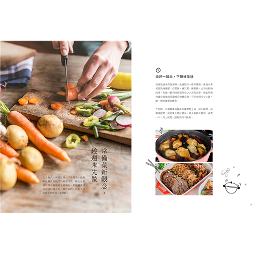 ◎滷好一鍋肉,下飯好美味─書裡的滷豬腳、白菜滷、滷三寶、滷雞腿、古早味紅燒肉等,煮好依所需份量分裝,下班時,只要解凍後就能快速覆熱上桌。