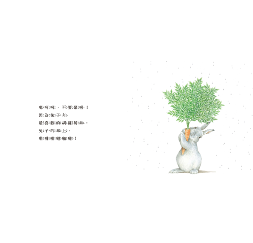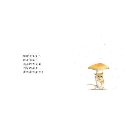 書中運用大量擬聲字、動物們都有屬於自己各自不同的雨傘,
