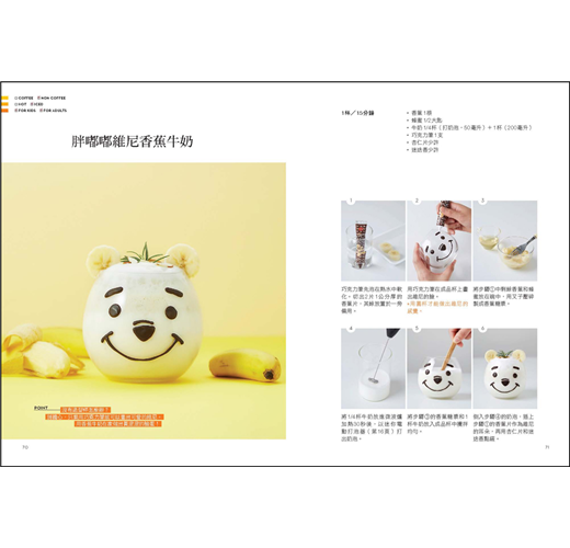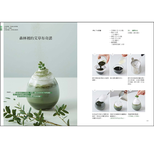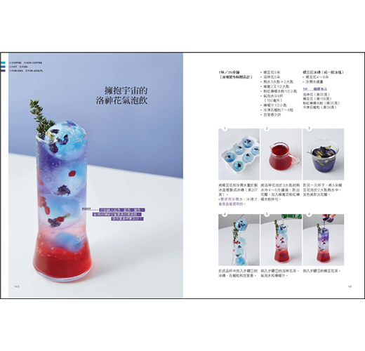 特色2:零基礎也不怕!簡單6步驟搭配訣竅傳授,任何人都能輕鬆上手不需要專業知識或卓越技巧,只要你有手就能做!每道飲品只要6步驟就能輕鬆完成,還有作者嘗試多次之後領悟的成功小祕訣,讓第一次接觸的手殘人,也能完成書中58道超人氣視覺飲品。