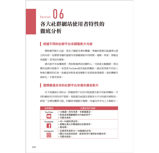 「根據FB、YouTube、IG等不同社群網站的特色具體說明,對實際的影片製作有很大幫助!」