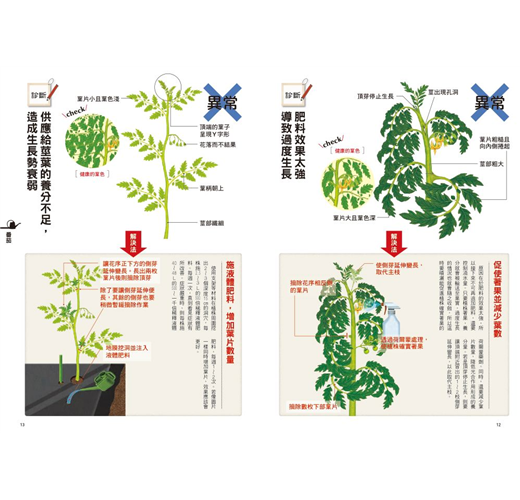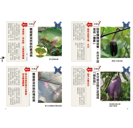 造成植株異常的原因百百種,是在於肥分?還是土壤結構?是水分灌溉?還是透氣程度?是因為種植方式?還是整枝修剪方式?或者又是因為病蟲害?若能夠早一步判斷,就能夠擬出適切的對策,也能夠避免情況繼續惡化,使蔬菜恢復原有的生長。