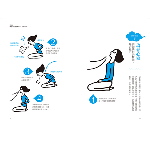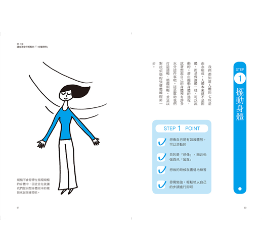 一開始只要按照步驟進行便能感受到身心的變化。習慣了之後,可以選擇任意步驟,或視時間、場合、狀況的不同集中練習等等,可以隨意調整。