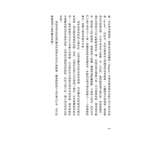 羅馬人民又如何?基本上守法嗎?是否只對諷刺詩人尤維諾(Juvenal)詩中的「麵包和競技場」有興趣?是否關心正義等抽象概念?我們要來研究羅馬人民是否曾設法對皇帝發揮任何影響,以及皇帝是否曾對群眾的法律和秩序需求有所回應。我們要來檢視羅馬人民在酒吧裡的談話,以及他們如何評論朝政。在專制皇帝的統治下,自由交談是一件危險的事,我們將看到人們經常會以匿名的安全方式來發表自己的批評。