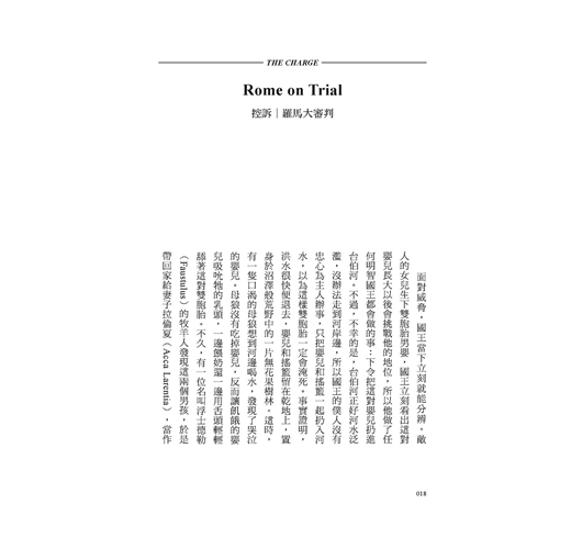 本書將羅馬送上審判席。很多人認為,羅馬是個罪惡之都,充滿野蠻、罪惡和腐敗。有位現代作家,將羅馬競技場的角鬥士戰鬥描述為「嗜血的人類大屠殺」、「迄今為止所發明最糟糕的血腥運動」,甚至聲稱「史上最具破壞性的制度就是納粹主義和羅馬角鬥士」。羅馬的征服戰爭,囊括在愛德華.吉朋(Edward Gibbon)所謂「對人道和正義的永久性侵犯」範圍內,若發生於現代,將會被帶到荷蘭海牙國際戰爭刑事法庭上。正如另一位著名學者所爭論,羅馬帝國中普遍存在著腐敗,政府努力的目標,受挫於高階官僚和軍事領導人的私人利益,導致帝國垮台。相較於現代流行的娛樂,無論是羅伯特.格雷夫斯的小說《我,克勞狄烏斯》(I Claudius)還是HBO電視連續劇《羅馬》,羅馬帝國都已成為各種性墮落的同義詞。但仍有人將羅馬視為有秩序和成功社會的一個範例,認為帝國「眾神的和平」實現了好幾世紀的和平,並使數百萬人免於最嚴重的恐懼—被侵略、攻打、死亡或奴役。羅馬的國家權威,啟發了現代西方世界中的許多政府和司法建築,從英國倫敦的老貝利法院,到美國華盛頓特區的國會大廈。