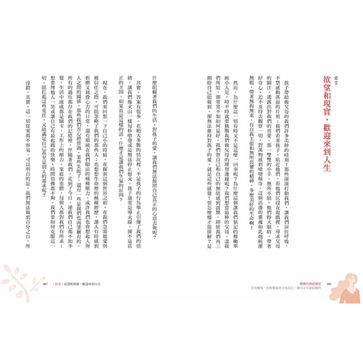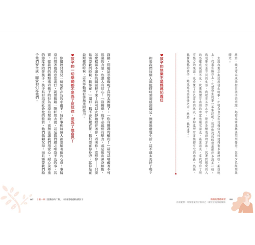 「本書是育兒路上的一大幫手,使父母更有意識覺察自己的情緒,並學著去面對及處理。值得細細品嘗的好書,讓它陪著你:找到內心的平衡,在愛裡成長。」