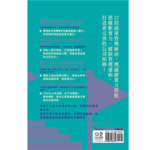 善用人才是上位者必學之術,管理是企業必備手段。《每個人的商學院・管理進階》帶你勾勒商業藍圖中的每一項細節,培育優秀人才、強化治理結構,複製成功DNA,實踐永續經營!