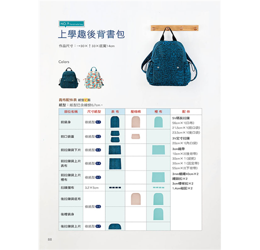 《肯尼布的生活手作包》是將個人多年來以肯尼布製作袋物所累積的心得,配合十餘年袋物打版經驗所企劃的一本手作包工具書,全書從肯尼布的特色與車縫要點講起,再以14款各具設計重點的包款,搭配不同的配色表現共計40件作品,每件作品均有詳細的表列圖片式裁布表,還以超詳細的實作拍攝做詳實的示範教學以及原寸紙型,讓讀者可以一步一步輕鬆學習各個包款,是難得一見的手作包工具書!希望界由此書的出版可以成為精進自己的動力、豐富個人的生活經驗,也能成為同好姐妹們互相交流的平台!