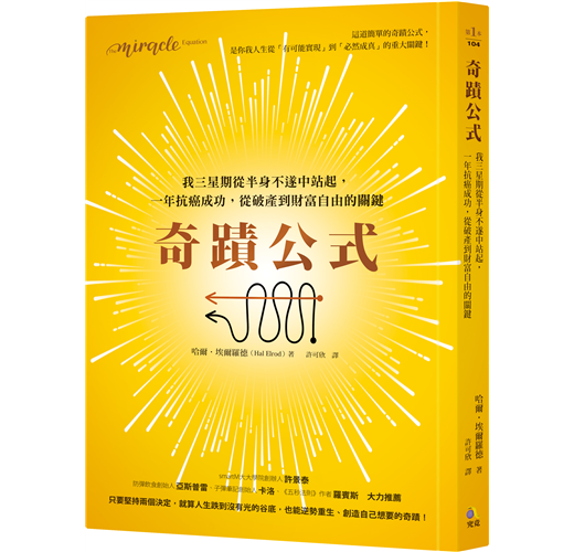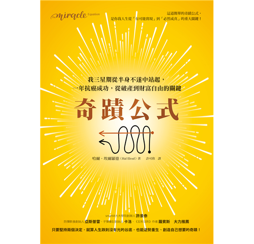 然而,哈爾所遭遇的挫折不只如此:29歲時遇上金融海嘯,他失去絕大部分客戶,幾近破產,卻也讓自己有機會重新思考真正的人生價值與重心;37歲那年罹患極罕見、存活率極低的急性白血病,但一年過後,他身上已找不到癌細胞的蹤影。而他之所以能挺過這些大小關卡,其實都是「奇蹟公式」的功勞。