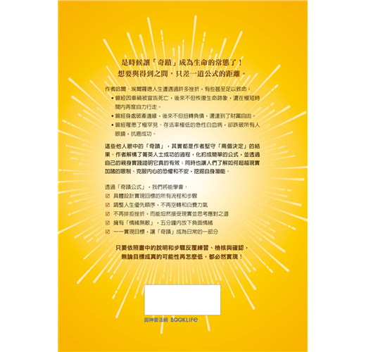 ☆作者解構並簡化了各界菁英獲得頂尖成就的過程。有了奇蹟公式,你不用再對著世界上的美好而興嘆。──萊拉.阿里(拳王阿里之女、世界拳擊冠軍)