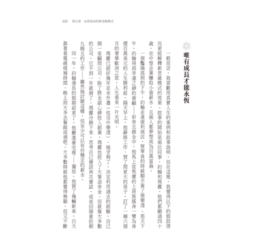 或許你對以下的場景覺得熟悉:你的書架擺滿一堆沒時間讀完的勵志書,也經常參加「如何改變人生」的講座、會議,卻還是覺得少了點什麼。你沒得到什麼實際成果、戶頭數字仍不符期望,自己周圍的人際關係也無法讓你感到充實。或許你掙扎著想創業、想找到適合自己的工作,或只是想在每天的生活中找到快樂。說不定以上所說的一切已經發生了,你卻還是想在個人或職業成就上繼續爬到虛無縹渺的下一階段。