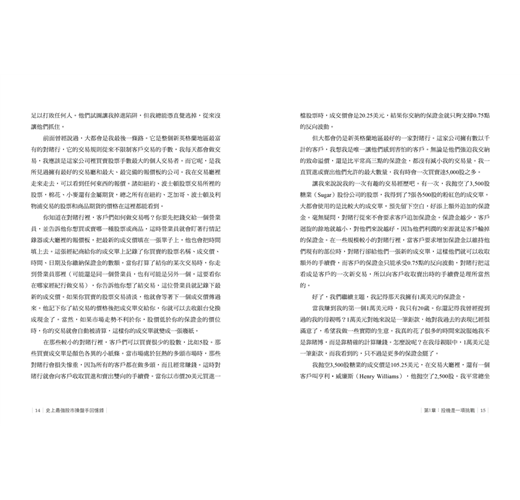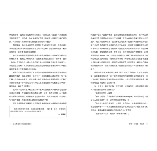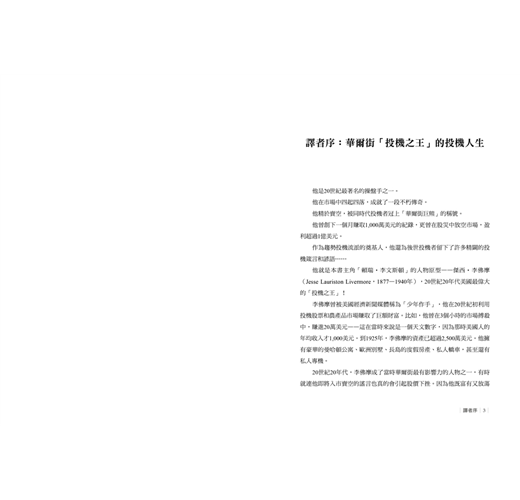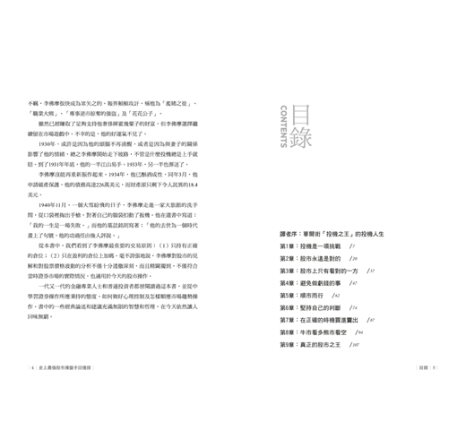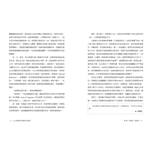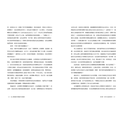 從本書中,我們可以看到李佛摩最重要的交易原則:(1)只持有正確的倉位,(2)只在盈利的倉位上加碼。毫不誇張地說,李佛摩對股市的見解和對股票價格波動的分析非常透徹,而且精闢獨到,不僅符合當時證券市場的實際情況,也適用於今天的股市操作。許多金融專業人士和投資者從中學習證券操作應該秉持的態度,如何做好心理控制,以及如何順應市場趨勢操作。