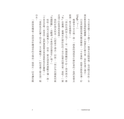 同學們對小辣椒紛紛投以欽佩的眼光,我轉頭看阿亮一副樂翻的表情。喝!問題不是他解開的,他跟人家在樂什麼?難道……難道他又從這裡面發現關於紅毛番的線索?