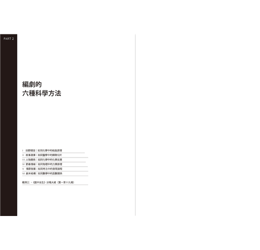 對我而言,要替電影編劇找到一套可以教授的方法,是不太可能的。可是在我自己編劇的過程中,卻不斷的冒出一些自創的「方法」,而這些方法卻是一些科學方法。所謂的科學方法,是從科學知識中找到一個最接近劇本創作的思考及運作方式,所以最终仍然是要依靠人腦。這些方法是在過去很長一段時間像是靈感一樣忽然跳出來,本身也像是另一種創作。終於在一個適當的時機,我把這些科學方法公開。在公開之前,我陸續在一些大學的編劇工作坊試著告訴學生,像是找到一種新藥,做人體實驗,效果不錯。