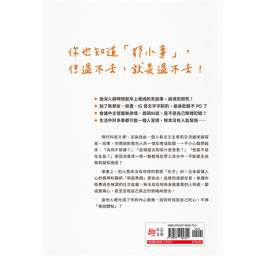 「為什麼是我?」「對啦,我就衰!」「我知道是小事,但就是很在意!」待人處事真誠善良的你,也常忍不住這樣抱怨,覺得都是他人的眼光讓你難以隨心所欲?