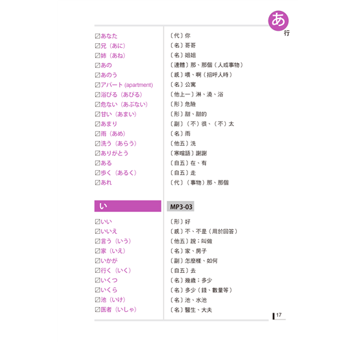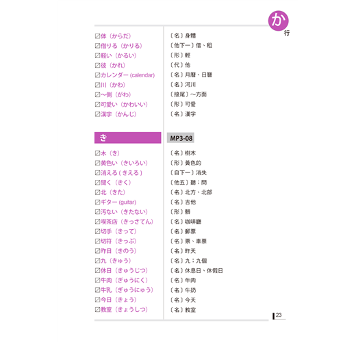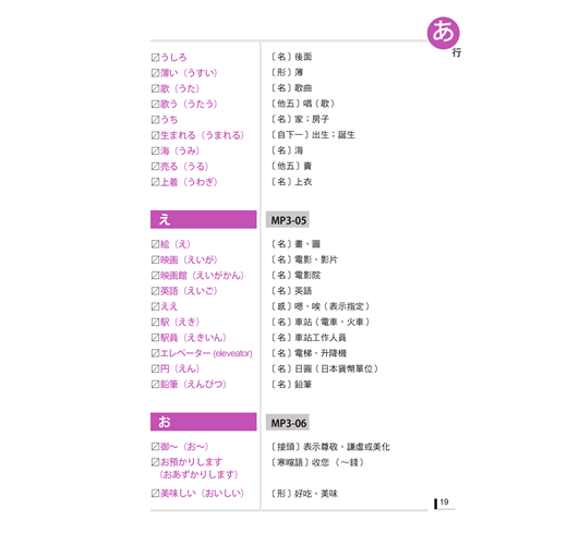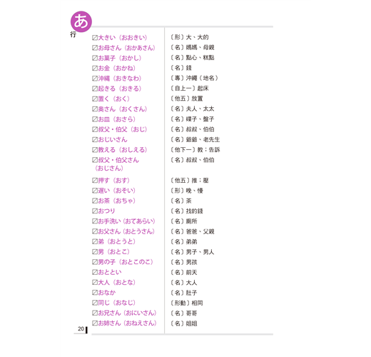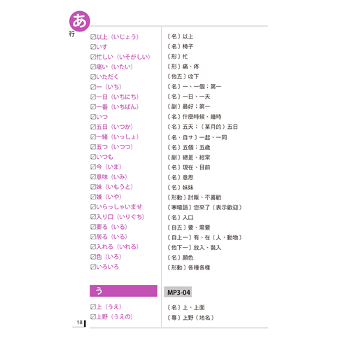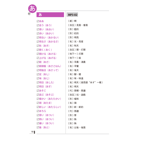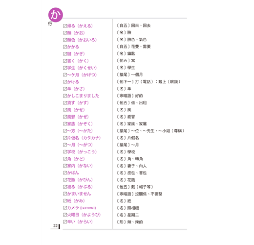 書中網羅「新日語能力試驗出題基準」,N1~N5檢定重要的單字,以提綱挈領的編排方式,各個單字的意思、詞性、常用字義、注意事項等均有詳細的說明。