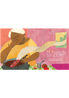 濃濃的茄汁燉肉,是家常的香味與記憶,這種燉菜十分費功夫、耗時間,需要小火慢熬、不停拌煮,儘管有食譜可以依循學樣,但是每個人的手藝、習慣、配料,甚至熬煮時間不同,都會煮出不一樣的滋味。透過拼貼手法,將食物的香味具象化,那道氤氳的香氣貫穿了每幅跨頁,扣緊故事的情節線,牢牢抓住讀者的心與胃,彷彿可以聞得見香噴噴的燉肉,忍不住也跟著嘴饞了起來。就像作者說的,這不是一本關於料理/食譜的書,而是濃濃的眷戀、分享與珍惜的故事。