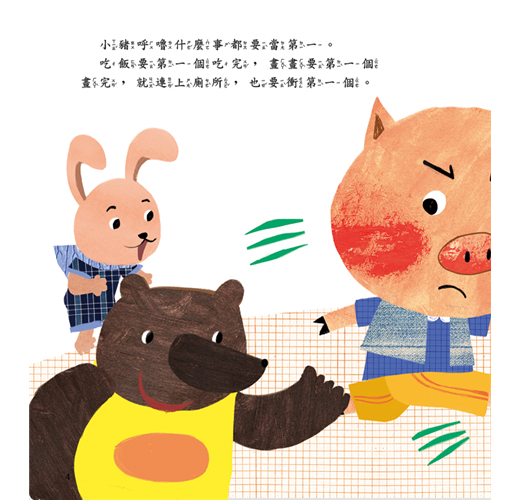 呼嚕覺得自己是最棒的!吃飯贏了爸爸,收拾碗筷也贏了媽媽,比賽穿衣服贏了小兔子,可是,賽跑比賽卻輸給了小鹿!不得了了!呼嚕竟然不是第一名!