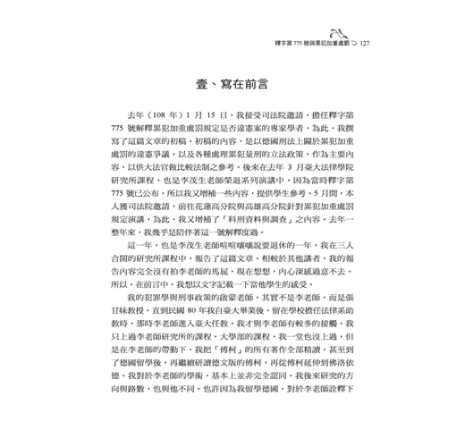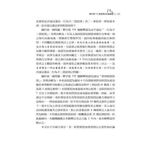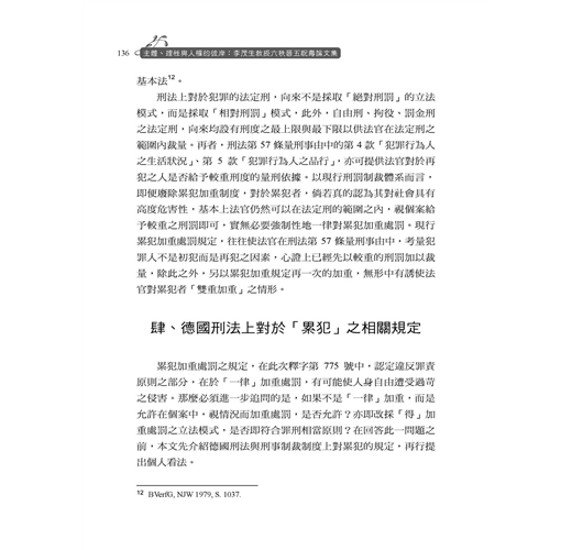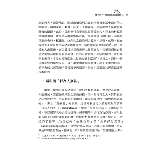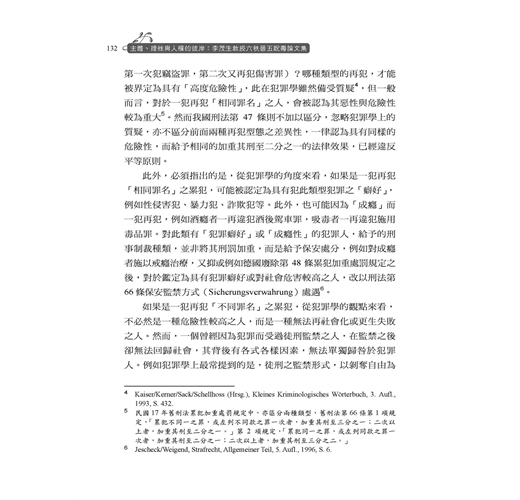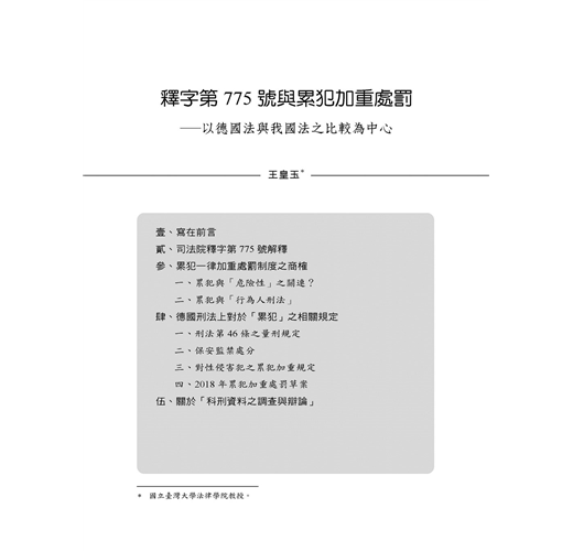 釋字第775號與累犯加重處罰──以德國法與我國法之比較為中心 王皇玉 125