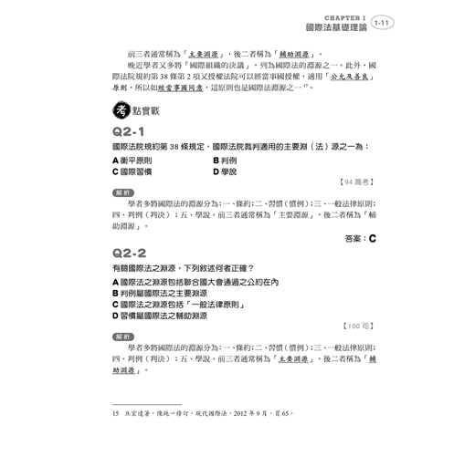 如今筆者已累積10 年教學經驗,針對考生的需求將上課教材出版成書,讓無緣成為讀家補習班與讀享國考小學堂學員的考生,也能享受筆者法學博士的教學功力,當然如能以本書輔助讀家補習班或讀享國考小學堂的國際公法課程,更能打通國際公法的任督二脈。