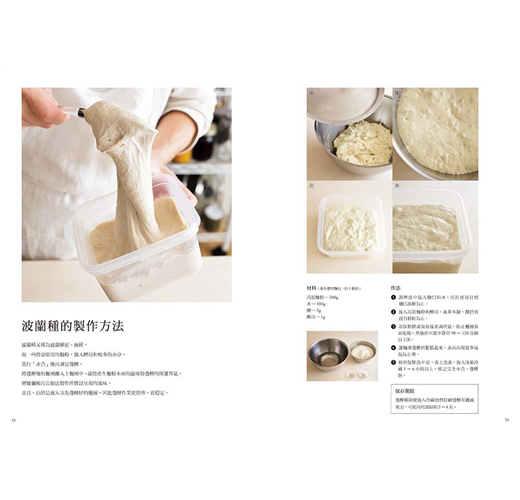 其實所謂的「種」意指起源,也就是對整個麵包有極大影響的首要關鍵,比如啤酒花種的原始成份中含有啤酒花,而果實種透過培養水果皮上的酵母而成,其中,「發酵種」在整體麵包來說是一個大類,在日本又分為「天然發酵」和「酵母發酵」兩類,至於製作天然發酵種時,可以先培養「起種」,經過數次「續種」後得來所謂「初種」,而本書要介紹的,是另外一款將麵粉和酵母混合,預先發酵的「液態酵母」,又常被稱為「波蘭酵頭」或「波蘭液種」,英文名為——Poolish。