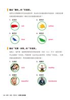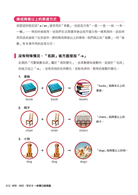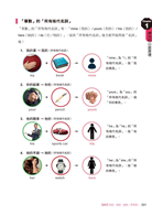 學完一章後,腦袋的記憶容量累積了多少呢?趕快來試試,看著實景圖,你是否也能說出完整的英語句呢?不要擔心說錯,放心大膽的嘗試,才能知道自己真正懂多少。每一道題目於頁面下方都會附上正確的說法及中文意思,仍有不懂的地方,趕緊翻回前面的內容,好好複習一下囉!