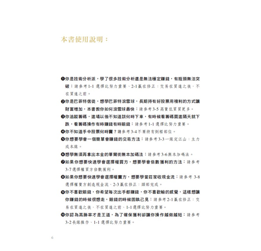 不管你是喜歡買股票賺鈔票,還是想學巴菲特存股、或喜愛選擇權買方十倍速獲利、當賣方包租公賺現金流,這本書都能讓你找到答案。