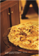 的確完全不同於過去我所認識的佛卡夏,這個類似披薩般的薄片,著實令人大開眼界。但又不同於披薩,上頭並沒有融化的起士,而是將起士夾在薄皮之間烘烤而成。四處都看得到焦脆的餅皮,外型膨鬆。想像著入口時的口感,令人期待不已。