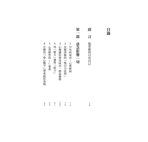 請將這本書當成自己心智的修煉所,在此上課求知、練習、答題,一旦你執行下去,將獲得打造最佳心理素質的所需技能,這將讓你的表現提升到下一個層次,而且這個成功是你自己的正確選擇,而非出於偶然。