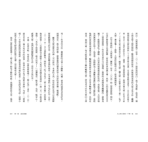 原來,大人不是不能明白、同理孩子,只是需要有人提醒,讓他們重新想起,那些他們在成長過程中不被允許,於是必須隱瞞、壓抑、遺忘的感覺。這是我寫《大人和小孩的一千零一夜》的初衷——我就是透過繪本和兒童小說,去理解孩子和孩子的世界,而孩子也透過閱讀理解自己、他人和世界。
