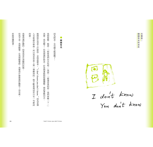 書名來自願有次哼唱的自創曲I don’t know you don’t know,我也驚覺,太多我不知道的,而不知道讓我對接著的事感到好奇,讓我不無聊。