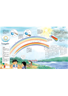 ■特別要強調的是,這套書完全是用圖像來表現的。因為我們相信:知識性、科學性的讀物,用圖畫更能引起孩子閱讀的興趣,也更能達到理解的目的。所以,每一單元都設計有「漫畫」和「跨頁解說圖」兩部分。「漫畫」部分是將該單元概念轉換成二~四頁的趣味情節,讓孩子在看漫畫中不知不覺得到知識;若能因而激發他深入探究的興趣,則可繼續翻開「跨頁解說圖」,藉由精密寫實的彩圖或實驗,循序漸進的引導文字,解答心中的疑惑,獲得更完整、更清晰的科學知識。